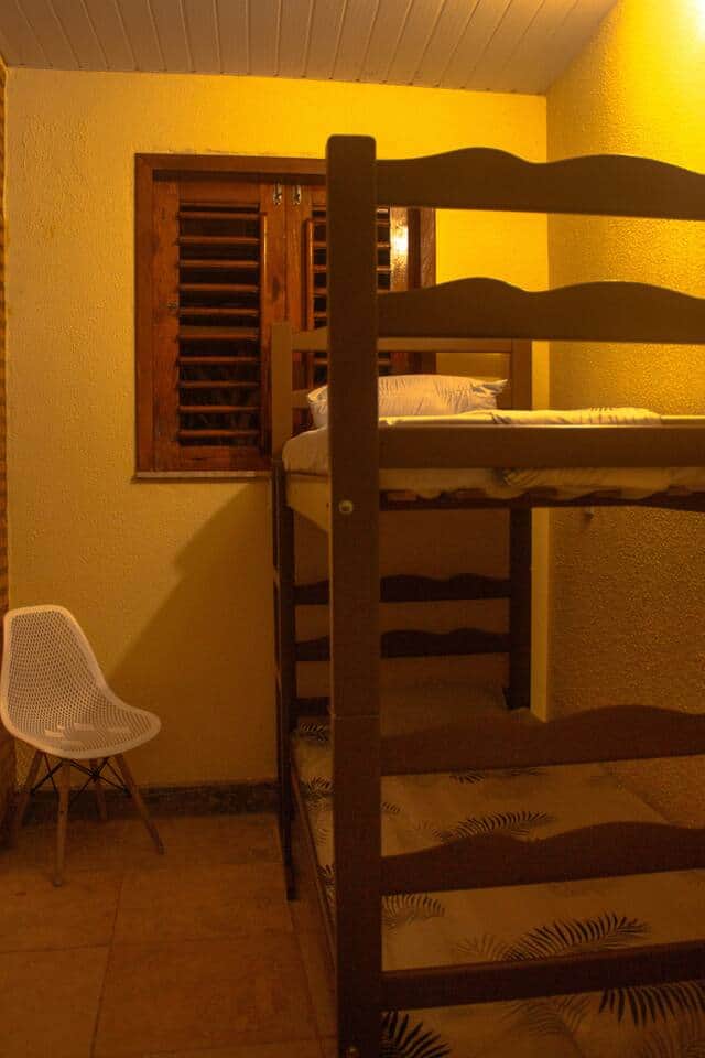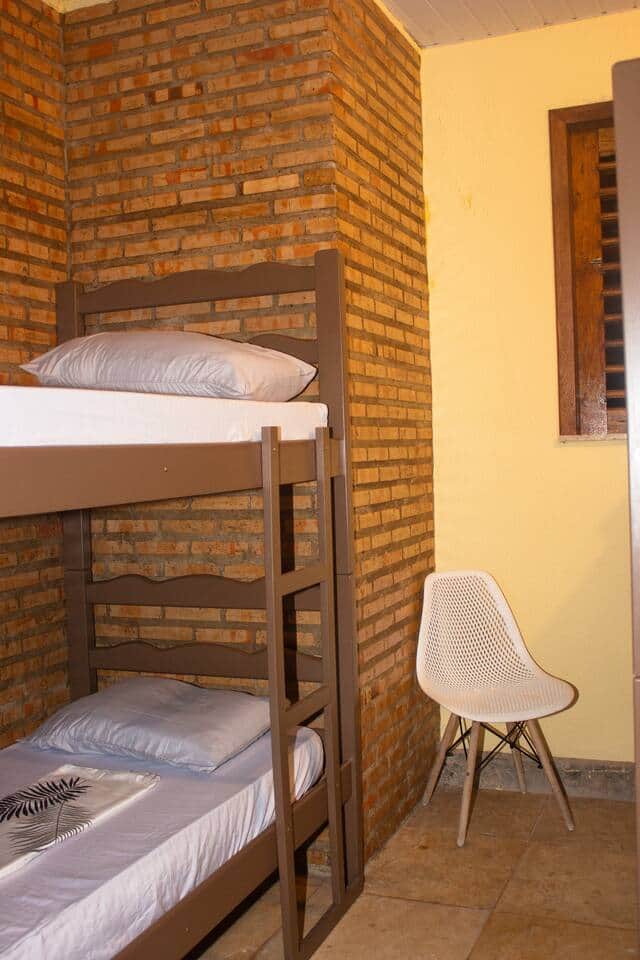 Quarto aconchegante com dois beliches, ideal para famílias ou amigos que viajam juntos. O quarto fica bem ao lado da piscina, permitindo desfrutar de um mergulho refrescante ou relaxar à beira d’água a qualquer momento. O banheiro está localizado em frente à piscina e é exclusivo para este quarto. Durante a estadia, você também pode utilizar a cozinha compartilhada e todas as comodidades da nossa casa de hóspedes. Perfeito para vivenciar a atmosfera relaxante de Cumbuco.